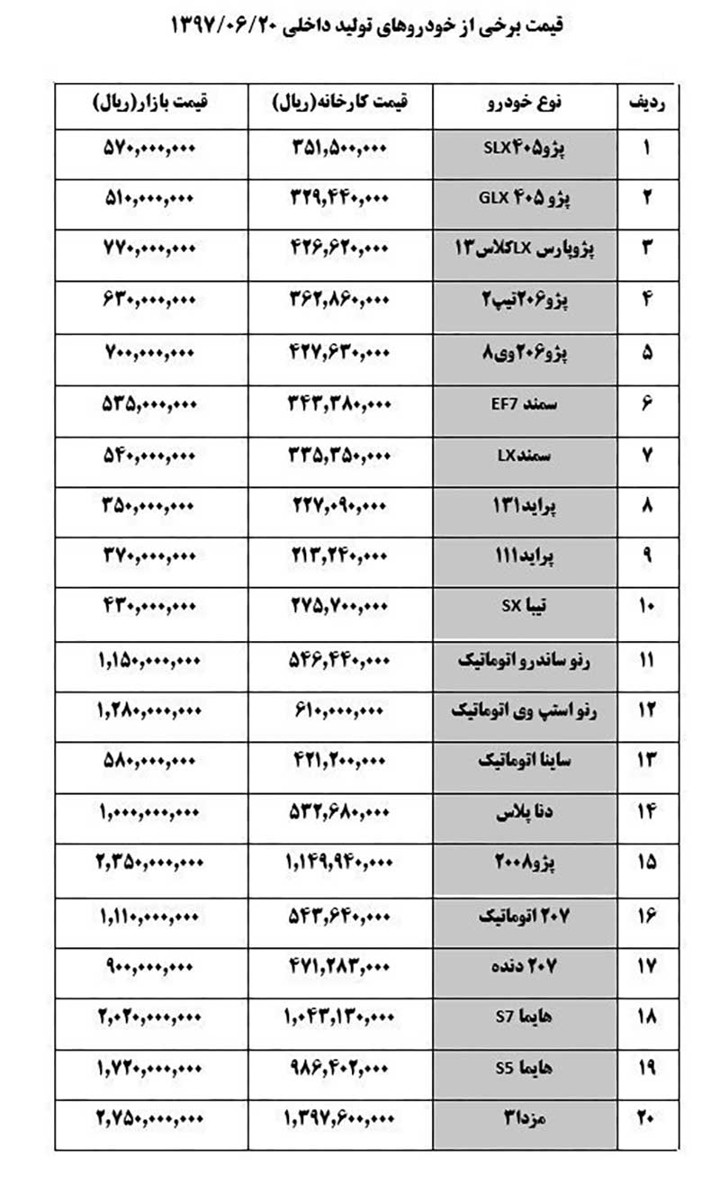 قیمت خودروهای داخلی در بازار امروز بهشرح زیر است: