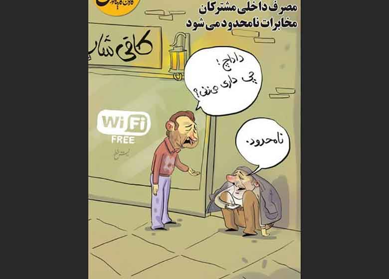 در حاشیه نامحدود شدن مصرف داخلی اینترنت، احمد رفیعی این کارتون را در نیش خط منتشر کرد.
