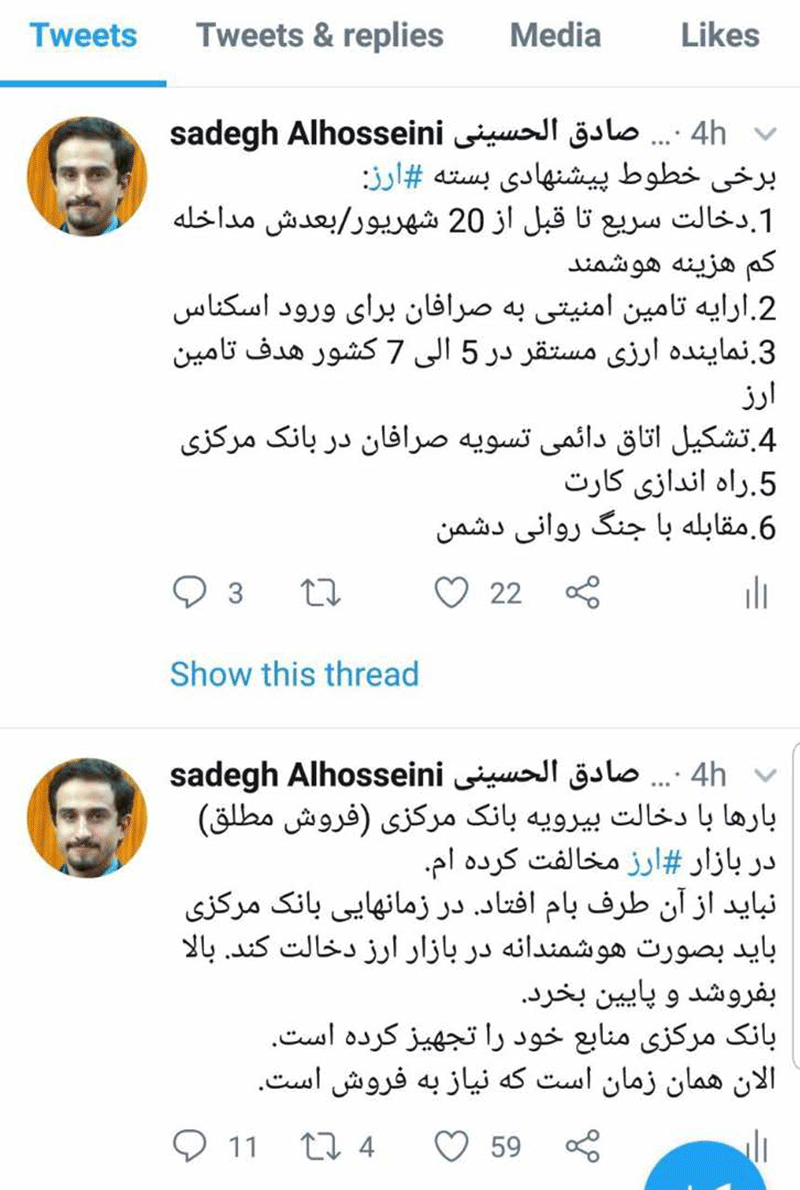 به گزارش اقتصادآنلاین، سیدمحمدصادق الحسینی در توییتی پیرامون التهاب بازار ارز ۶ محور اصلی بسته ارزی کوتاه مدت که بانک مرکزی باید در نظر بگیرد را اینگونه عنوان کرد: