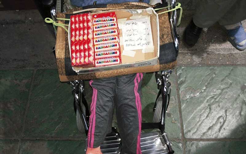 داستان زندگی حدیث با دیگران دستفروشان متفاوت است چرا که وی ساعتها باید بر روی ویلچر بشیند تا مردم او را ببینید و از او خریدی کنند.