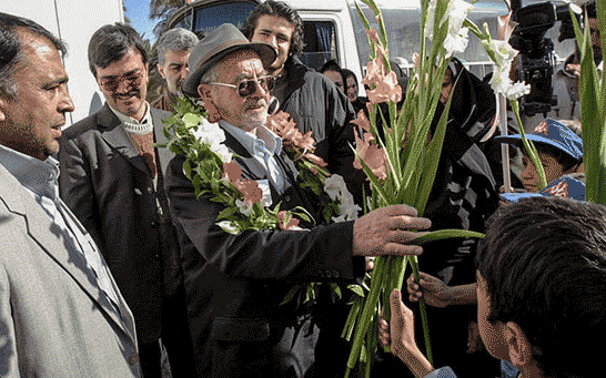 تصاویر آرشیوی، مرحوم ریزی علی خواجوی در سال ۱۳۸۳، یکسال پس از زلزله بم را در سفر به این شهر نشان میدهد.
