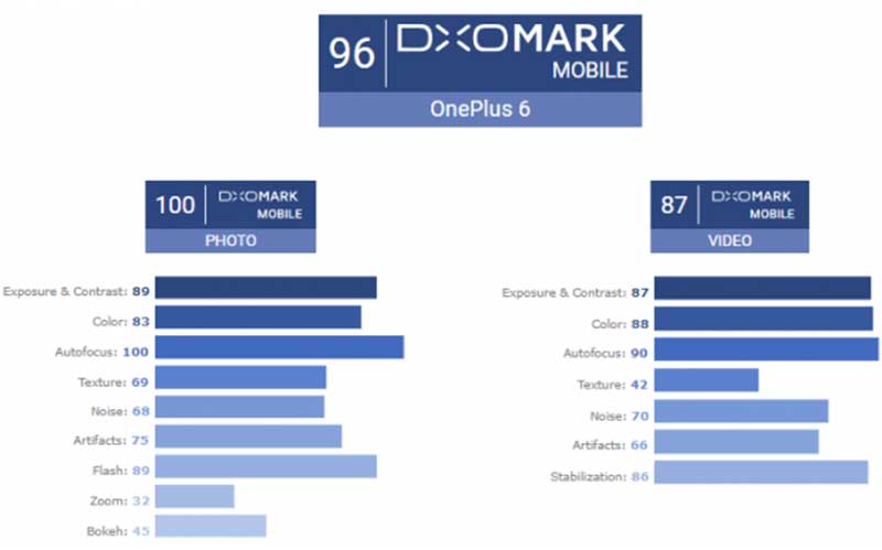 دوربین وان پلاس ۶ (OnePlus 6) موفق شده امتیاز کلی ۹۶ را از سایت DxOMark کسب کند که آن را بالاتر از گلکسی نوت ۸ و آیفون ۸ پلاس قرار میدهد.