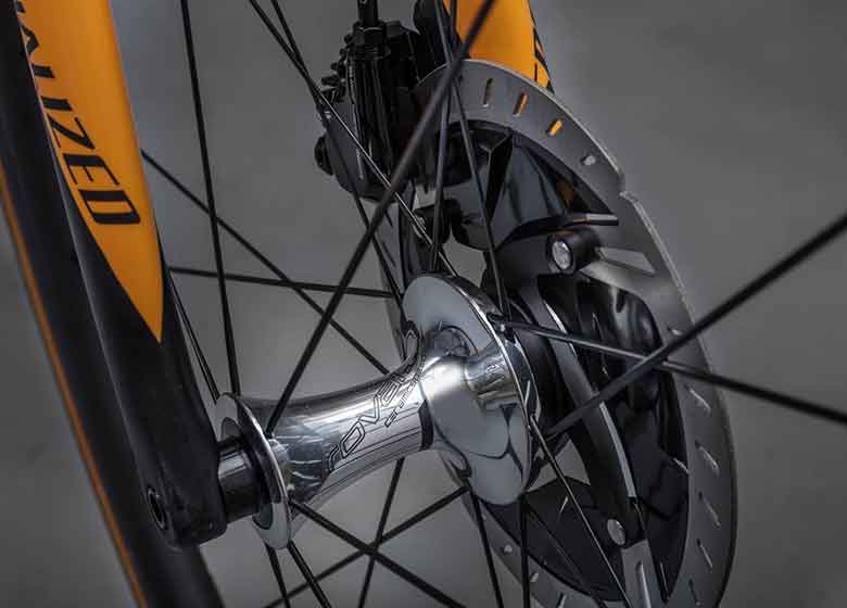 چرخ‌های به کار رفته در این دوچرخه با الهام از چرخ خودروهای مسابقه‌ای این خودروسازی ساخته شده و نوار خودرو به شکل سفارشی از چرم ساخته شده که دوخت‌های نارنجی رنگ در آن به چشم می‌خورد.