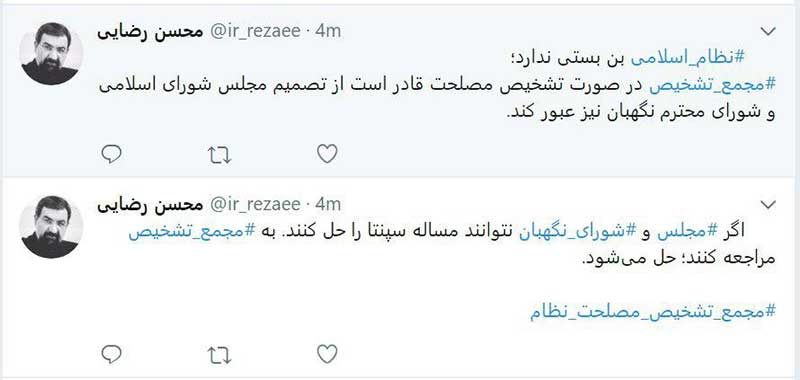 دو توئیت محسنرضایی درباره مسألهسپنتانیکنام