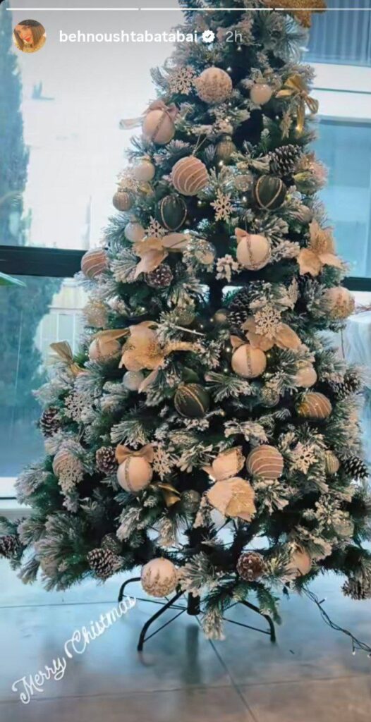 در این تصویر، بخشی از دکوراسیون کریسمسی خانه بهنوش طباطبایی دیده میشود که با تزئینات مخصوص این مناسبت آماده شده است. انتشار این عکس با واکنش کاربران فضای مجازی همراه شده و توجهها را به دکوراسیون کریسمس خانه او جلب کرده است.