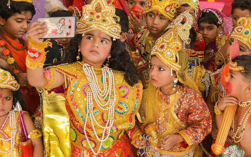 کودکان هندو در لباس خدایان هندوها در غرب راجستان هند