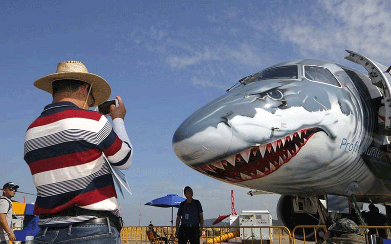 یک هواپیما به شکل نهنگ در نمایشگاه هوایی چین۲۰۱۸