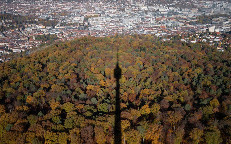 سایه یک برج تلویزیونی در اشتوتگارت آلمان