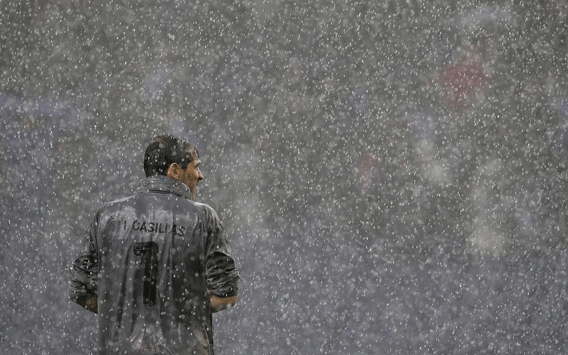 ایکر کاسیاس دوازه بان تیم پورتوی پرتغال در دیدار مقابل لکوموتیو مسکو در هوای بارانی