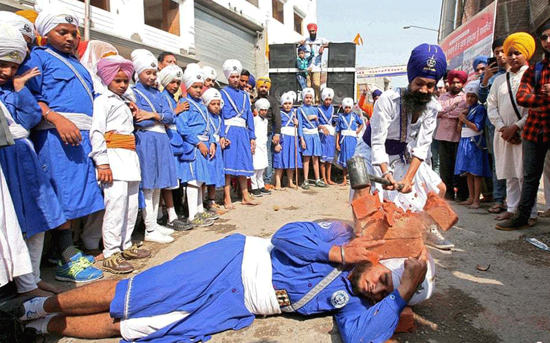 شکستن آجر روی سر با پتک در حاشیه برگزاری مراسم مذهبی هندوها در هند