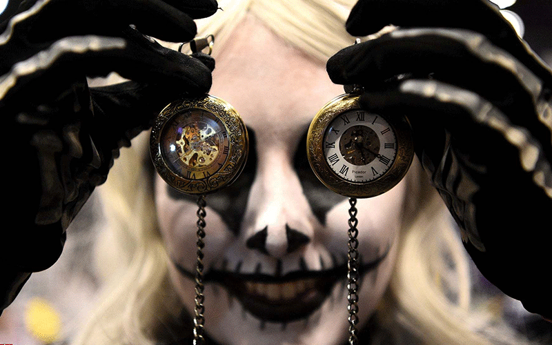 دو ساعت جیبی در یک نمایشگاه در لندن