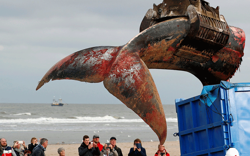 تکه کردن نهنگ به گل نشسته در ساحل بلژیک
