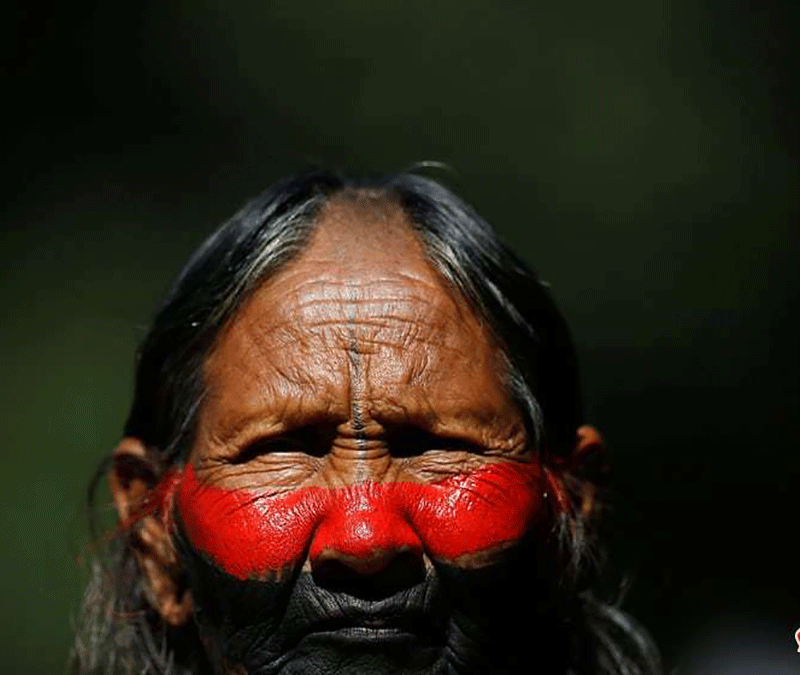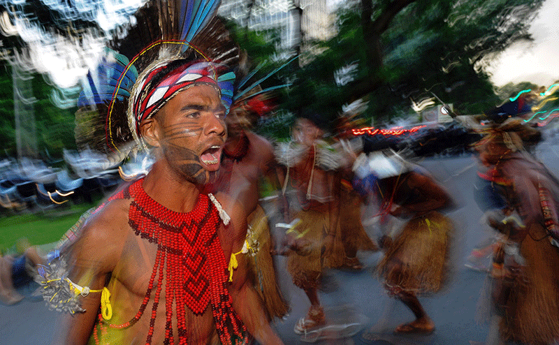 یک بومی برزیلی در تظاهرات دفاع از حقوق بومیان