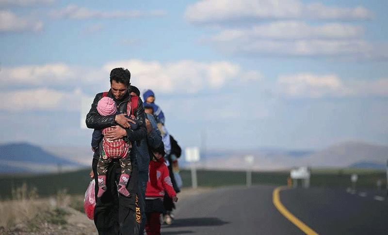 پناهجویان در امتداد جاده ای در ارزوروم ترکیه