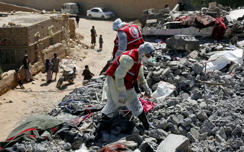 نجات زیر آوار ماندگان در محل حمله هوایی ائتلاف به رهبری عربستان سعودی به شهر صعده یمن/ گتی ایمجز