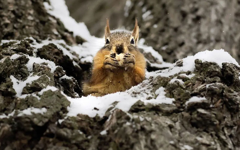 یک سنجاب روی درختی پوشیده از برف در پارک “سِیمِنلر” شهر آنکارا ترکیه/ آسوشیتدپرس