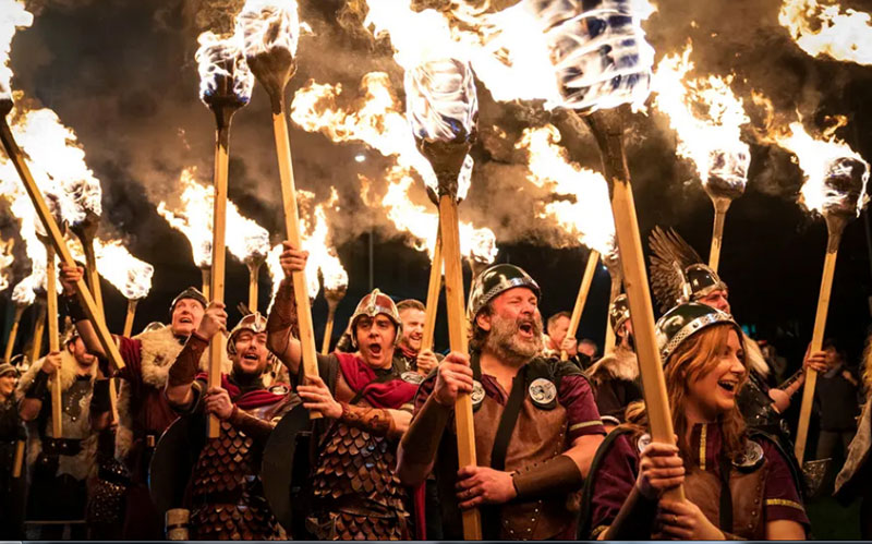 افرادی با لباس وایکینگ ها در جشنواره زمستانه موسیقی در شهر گلاسکو اسکاتلند/ PA