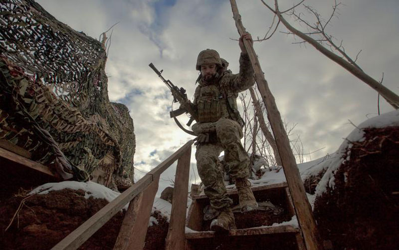 نیروهای ارتش اوکراین در سنگرهای خود در جبهه شرقی و برای مقابله با نیروهای جدایی طلب شرق اوکراین موضع گرفته اند./ رویترز