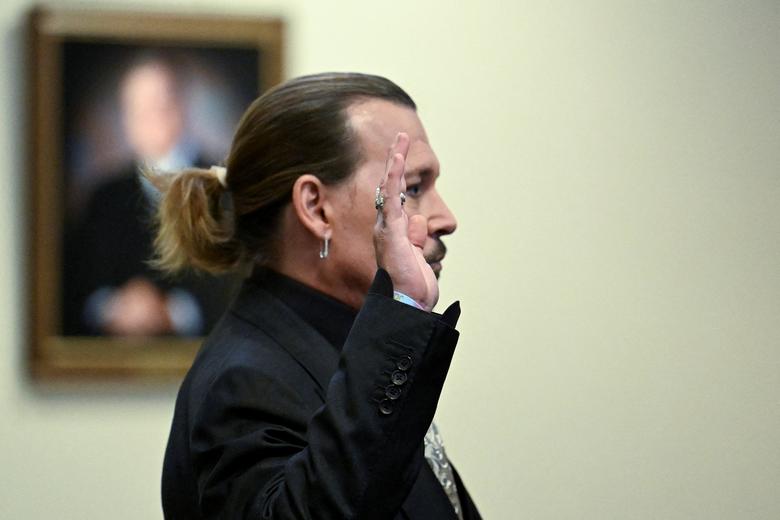 “جانی دپ” هنرپیشه مشهور هالیوود در حال ادای سوگند در دادگاهی که به شکایت همسر سابقش از او تشکیل شده است./POOL