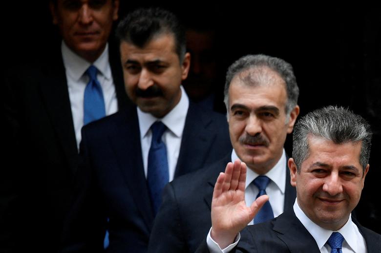 هیات اقلیم کردستان عراق به سرپرستی” مسرور بارزانی” (نخست وزیر اقلیم کردستان عراق) در حال ترک مقر نخست وزیری انگلیس پس از دیدار با بوریس جانسون نخست وزیر انگلیس/ رویترز