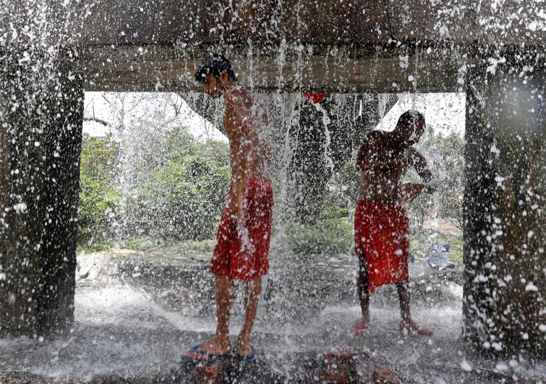 خنک شدن زیر یک خط لوله آب شکسته در شهر کلکته هند/ رویترز