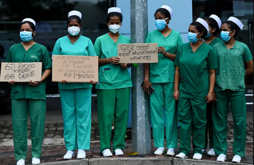 اعتراض کادر درمان سریلانکا به کمبود لوازم پزشکی در مقابل بیمارستان کودکان در شهر کلمبو/ خبرگزاری فرانسه