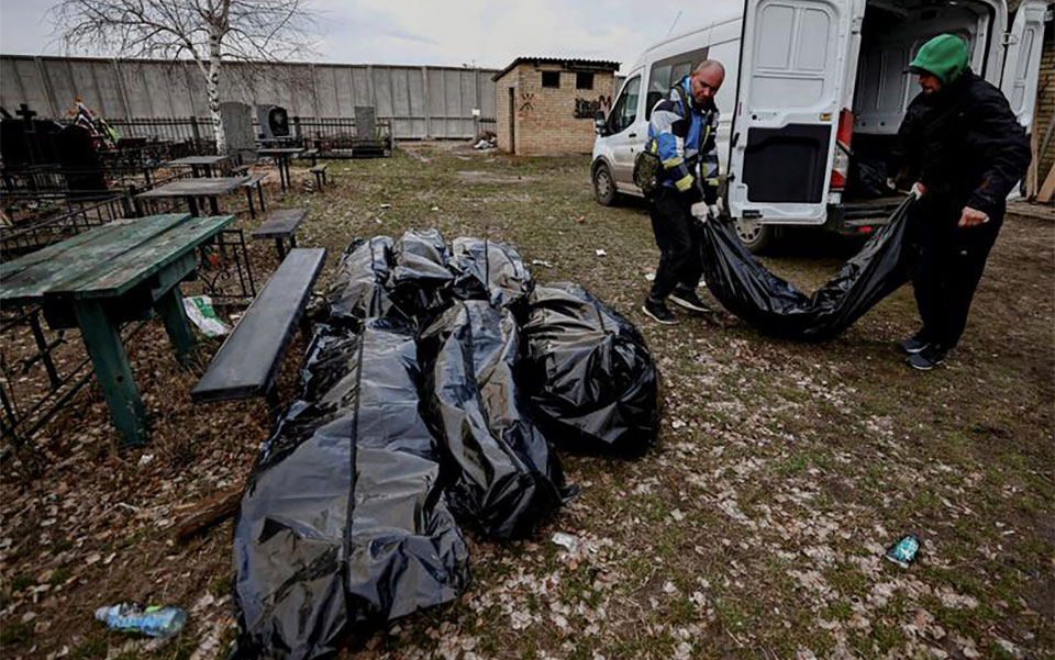 جمع آوری اجساد غیرنظامیان کشته شده در شهر پوجا اوکراین/ رویترز