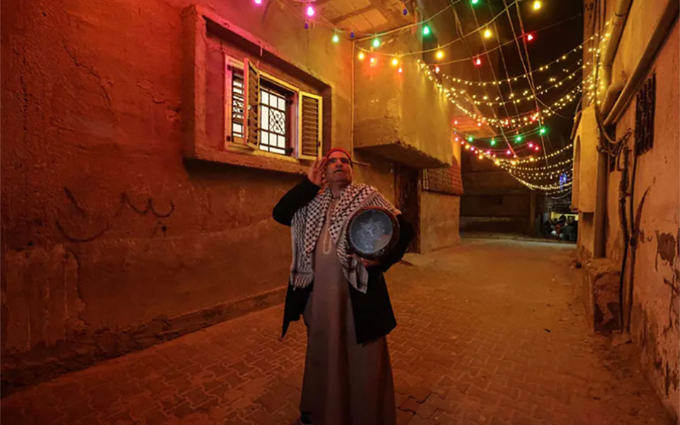 بیدار کردن مردم غزه برای صرف وعده سحری در ماه رمضان/ خبرگزاری فرانسه