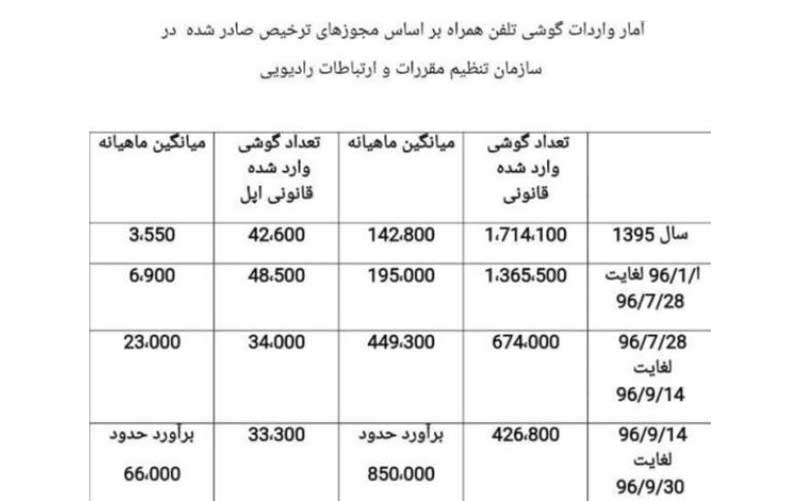 وزیر ارتباطات و فناوری اطلاعات از رشد ۱۰۰۰ درصدی واردات مجاز و قانونی گوشی های ساخت کمپانی اپل به داخل کشور خبر داد.