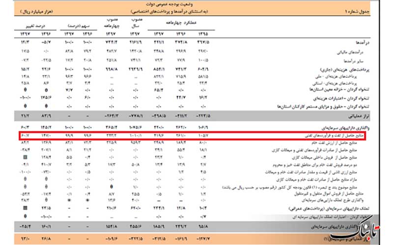 برای پاسخ به این پرسش به مصاحبه محمدباقر نوبخت، رئیس سازمان برنامه و بودجه در مورخه ۵ تیر ۱۳۹۷ مراجعه می کنیم؛ هر چند نوبخت در این مصاحبه، آمارهای نفتی برای سه ماهه نخست سال را ارائه نمود، می توان با کمی اغماض آن را برای چهار ماهه ابتدایی سال نیز درست دانست.