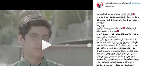 بهاره رهنما، با انتشار پستی درباره سریال «بچه مهندس ۲» در اینستاگرام درباره موضوع کودک همسری اظهارنظر کرد.