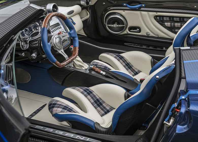 داخلی خودروی بارچتا، صندلیها از مدل هوایرا الهام گرفته شده و روکش آنها از چرم طبیعی به رنگ عاج با قسمتهایی از تارتان (نوعی پارچه پشمی شطرنجی) و برجستگیهای چرمی آبی ساخته شده است. فرمان نیز با روکش چرمی و چوب (یکی از عناصر چندگانهی الهامبخش مسابقات کلاسیک موتوراسپرت) تزئین شده است.