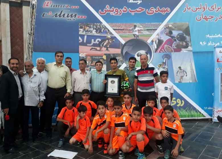 مهدی حب درویش که با رکورد ۳۰ ساعت روپایی با توپ فوتبال در جهان نامش در کتاب گینس ثبت شده است، در مراسمی به مناسبت روز خبرنگار رکورد جدیدی از خود به جای گذاشت.