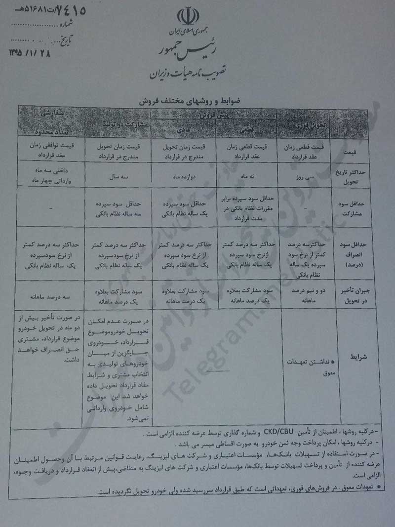 سازمان حمایت شرایط فروش و پیش فروش خودرو را اعلام نمود+سند