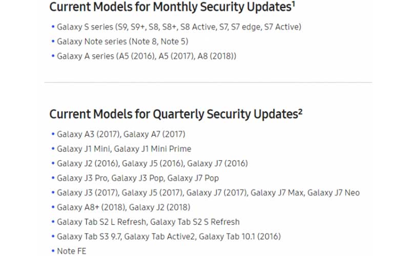 در این لیست آنطور که مشخص است، پشتیبانی از گوشی های گلکسی اس ۶ سامسونگ پایان یافته است. گلکسی اس ۶، اس ۶ اج، اس ۶ اج پلاس و اس ۶ اکتیو همگی شامل گوشی های خانواده Galaxy S6 هستند که از لیست صفحه پشتیبانی سامسونگ حذف شدهاند. با توجه به این که این خانواده در ماه آوریل ۲۰۱۵ عرضه شدند و حالا وارد ماه آوریل سال ۲۰۱۸ میلادی شدهایم، به نظر میرسد که حالا دیگر دورهی دو سالهای که سامسونگ آن را متعهد شده بود پایان یافته است. سامسونگ همچنین متعهد شده است که از گوشی میان رده گلکسی A5 همچنان پشتیبانی کند، البته اگر محصولی که شما خریدهاید نسخهی سال ۲۰۱۶ به بعد این گوشی باشد. اگر گلکسی ای ۵ شما نیز نسخه سال ۲۰۱۵ است، اندروید نوقا آخرین آپدیت اندرویدی است که آن دریافت خواهد کرد.