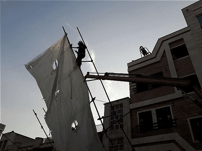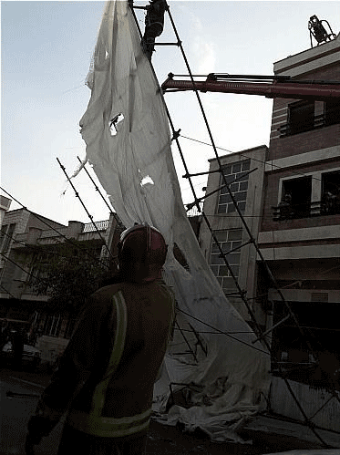 سقوط داربستهای ساختمان نیمهکاره روی کابل برق فشار قوی + تصاویر