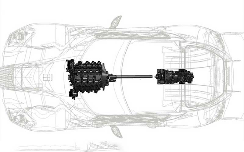 انتقال وزن ۴۹ درصد جلو و ۵۱ درصد عقب هم دال بر این ادعا است. این چینش فضای کافی برای قرارگیری ساختار فیبرکربنی شاسی در قسمت جلو را فراهم کرده؛ بهگونهای که اکنون سیستم تعلیق طبقدوبل بههمراه کویلاورها بهراحتی نصب شدهاند. این چینش در قسمت عقب هم حفظ شده؛ اما درعینحال، فضای زیادی هم برای صندوق دراختیار است. لاستیکهای میشلن اسپرت پایلوت هم از نکات درخورتوجه خودرو است.