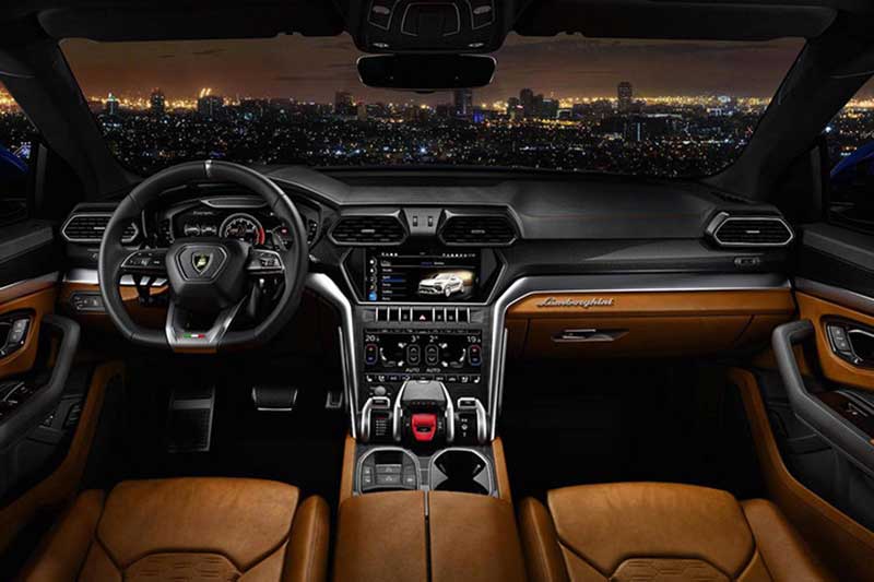 در طراحی کابین اوروس، یک کنسول مرکزی و انواع مختلف زاویههای زیبا و تماشایی جلب توجه میکنند. طرح مسطحشدهی بخش پایینی فرمان و دکمهی قرمز استارت همانند طراحیهای موجود در خودروهای اسپرت است؛ دسته دنده دقیقاً در جلوی دکمهی استارت قرار دارد و در کنار آن، دکمهی انتخاب حالتهای رانندگی مختلف کار گذاشته شده است. همانطور که پیش از در تیزرهای ویدئویی منتشرشده دیده بودیم، شاسیبلند اوروس به پنل دیجیتال فرمان و انواع مختلفی از حالتهای رانندگی شامل استرادا (Strada)، اسپرت، کورسا (Corsa)، سابیا یا شنی (Sabbia)، ترا یا آفرود (Terra) و نِوِ یا برفی (Neve) مجهز است.