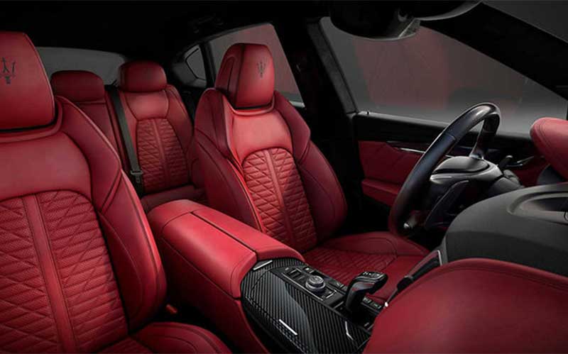 در داخل کابین نسخهی جدید لوانته ولکینو امکاناتی از جمله صندلیهای مجهز به سیستم گرمایشی و تهویه، همراهبا ترکیب چرم مشکی و دوخت قرمز یا برعکس به چشم میخورد. لوگوی نیزهی سهشاخه مازراتی روی پشتسری صندلیها وجود دارد، درحالیکه قطعات فیبر کربنی در سراسر کابین از جمله اهرم تعویضدنده، غربیلک فرمان و کنسول مرکزی خودنمایی میکنند. لوگوی کرومی «Vulcano» نیز در داخل کابین نشان میدهد که این مدل، محصول سفارشی است.