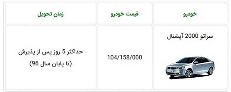 شرایط فروش سراتو 2000 آپشنال اعلام شد