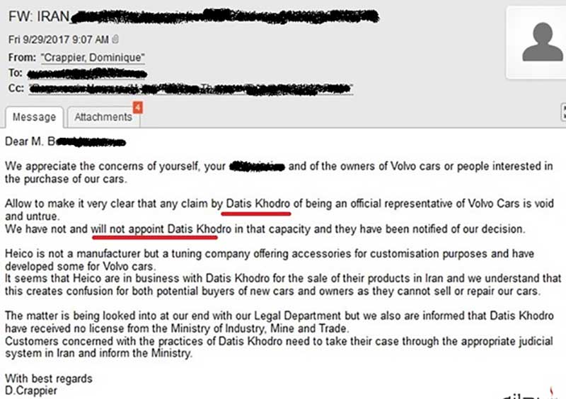 شرکت ولوو: داتیس خودرو نماینده ما در ایران نیست؛ اعتراض دارید شکایت کنید!