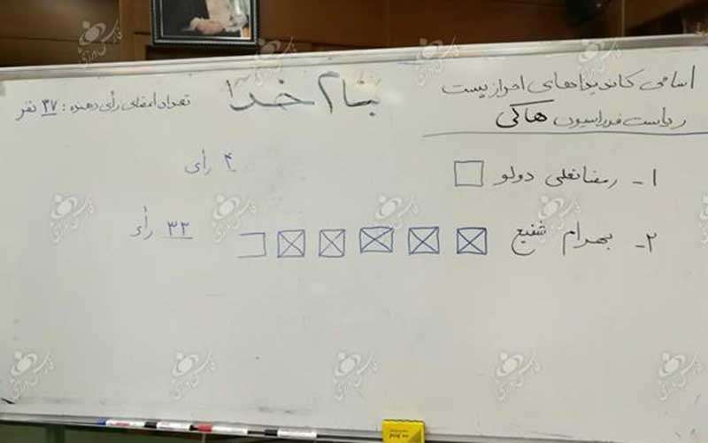 از این جمع فرزاد فتاحی و محمدناصر نجف پور در مجمع غیبت داشتند تا انتخابات بین دو کاندیدای باقی مانده یعنی بهرام شفیع و رمضانعلی دولو برگزار شود.