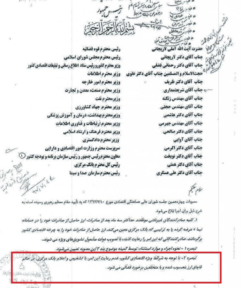 این درحالی است که پایگاه اطلاعرسانی دولت متن ابلاغیه دهگانهء رئیس جمهور مبنی بر “قاچاق محسوب شدن ارز صادراتی که تا ۳ ماه به کشور بازنگشته است” را تکذیب کرد.