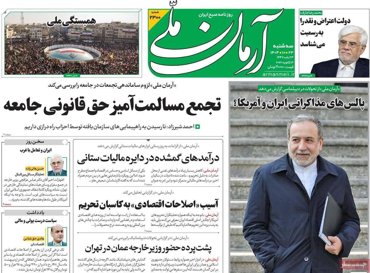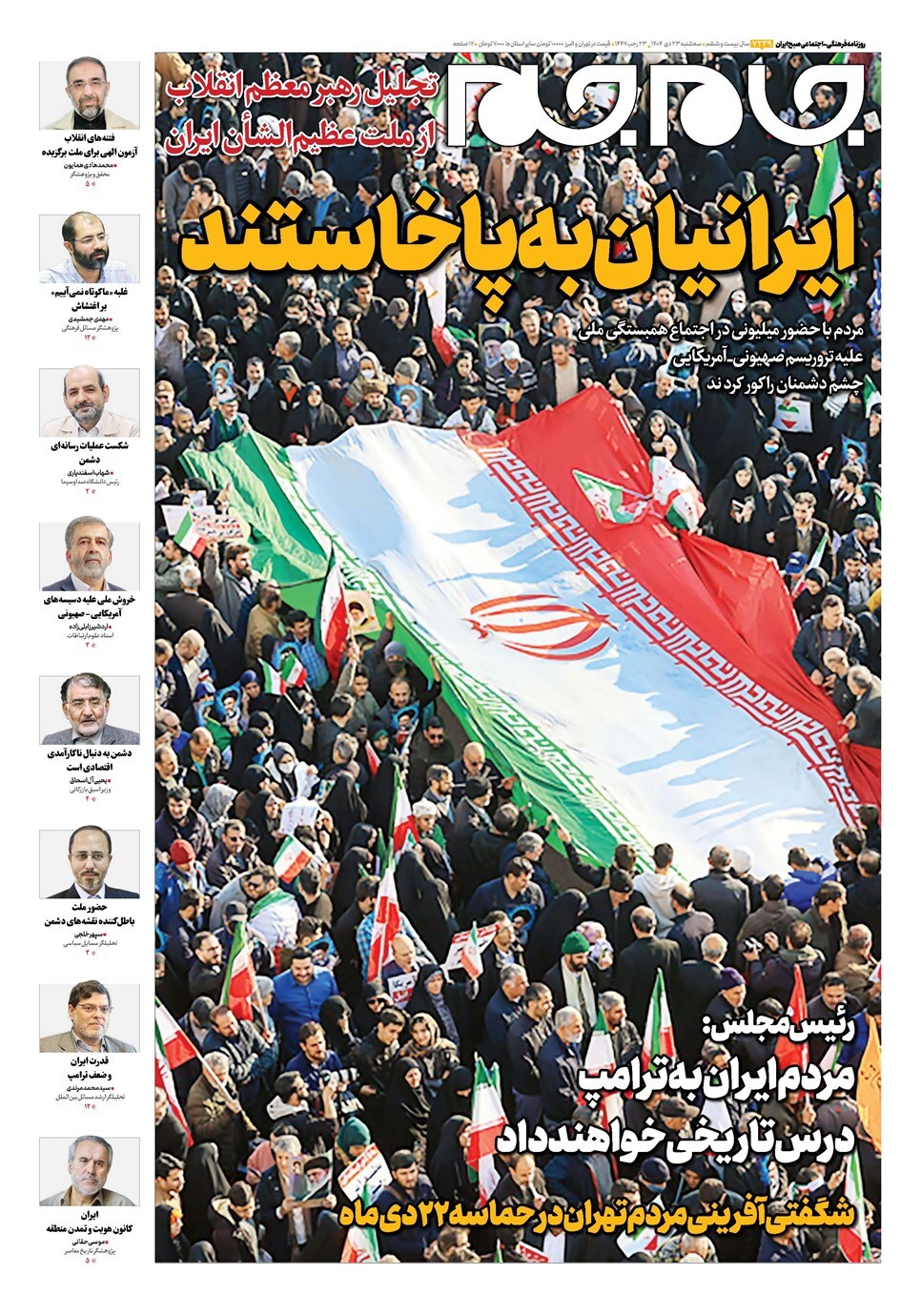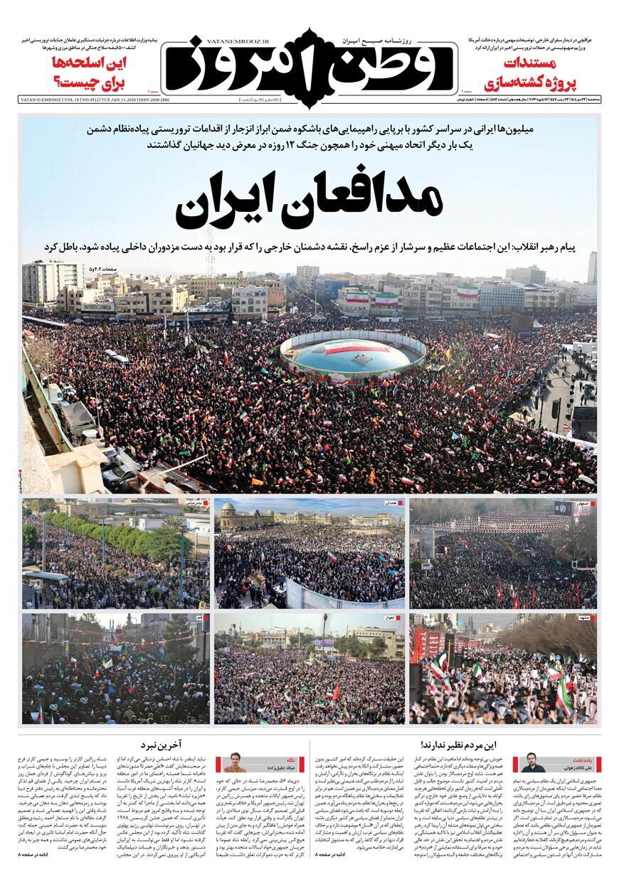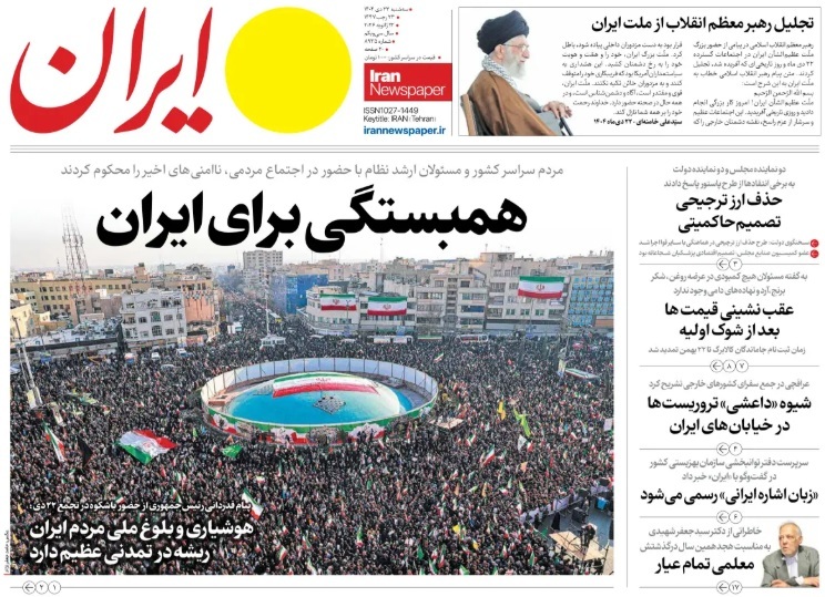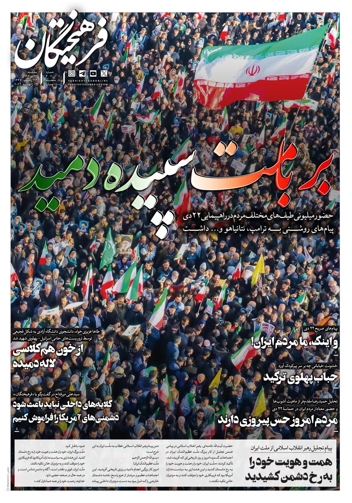 بازتاب_ اتمام حجت مردم با مزدوران موساد، تجلیل رهبر انقلاب از ملت ایران، پالسهای مذاکراتی ایران و آمریکا و ملاقات یوزها با ستارگان جهان از عناوین روزنامههای امروز کشورمان است.