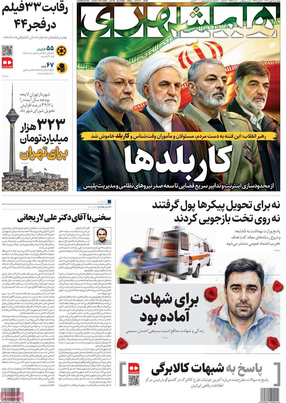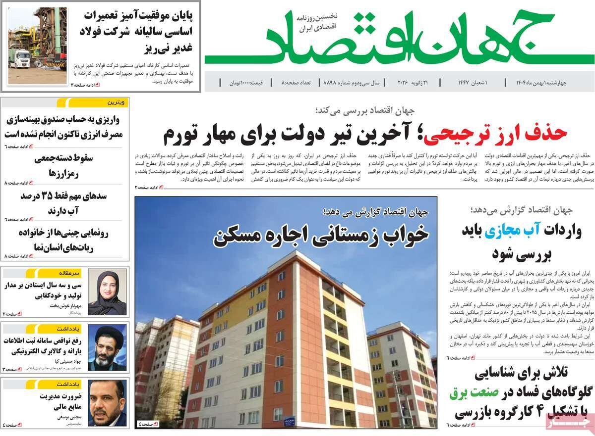 صفحه اول روزنامه های چهارشنبه اول بهمن 1404