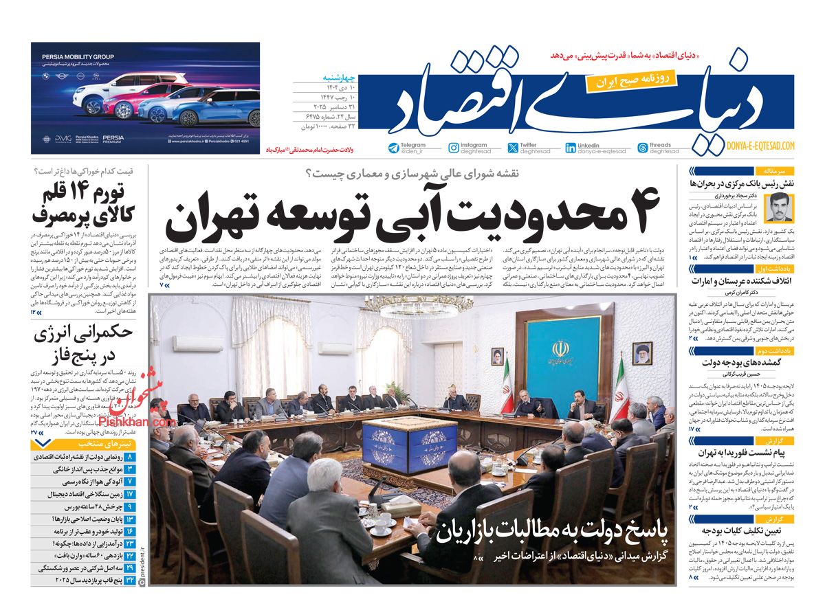 صفحه اول روزنامه ها 10 دی 1404