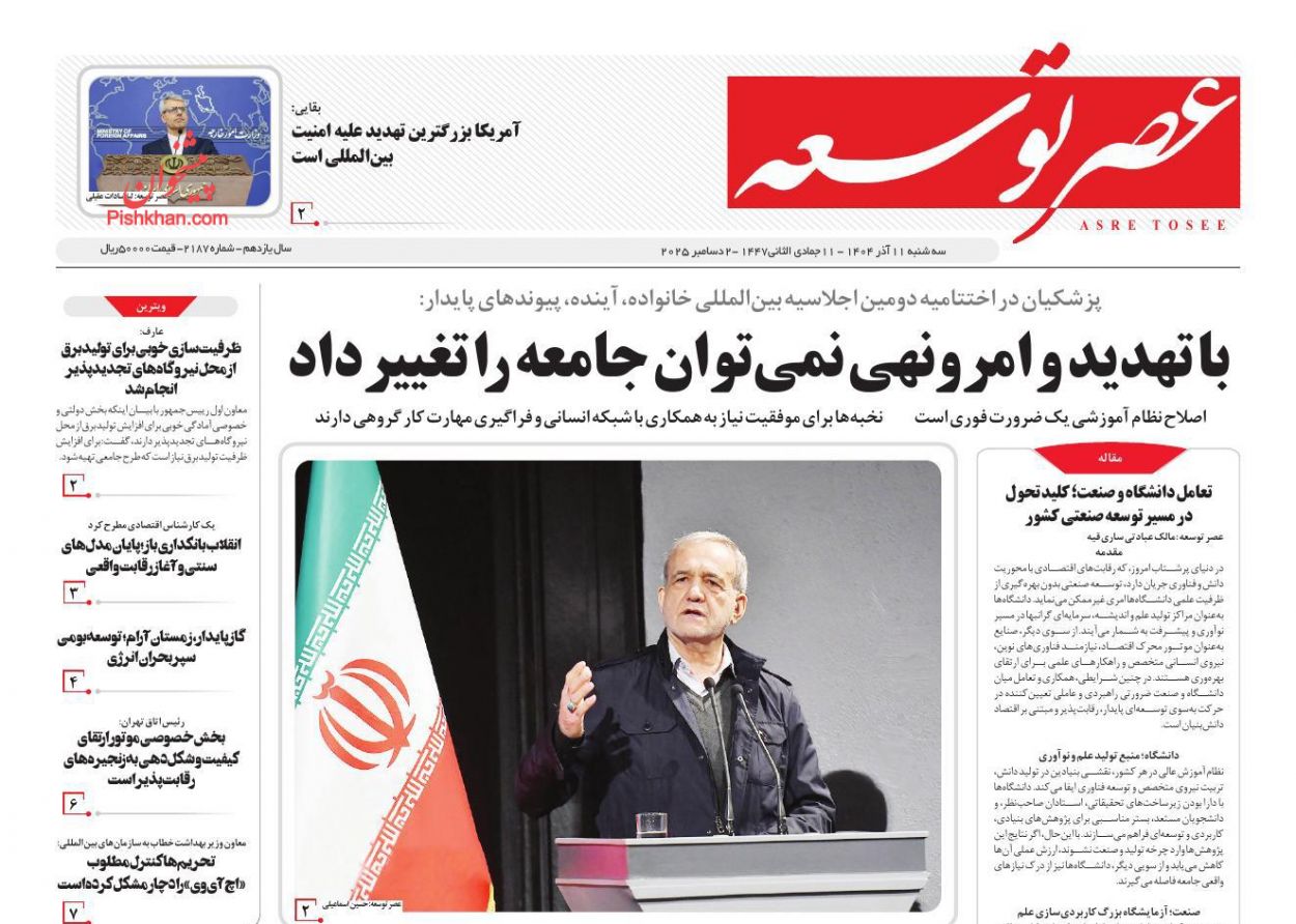 صفحه اول روزنامه ها 11 آذر 1404