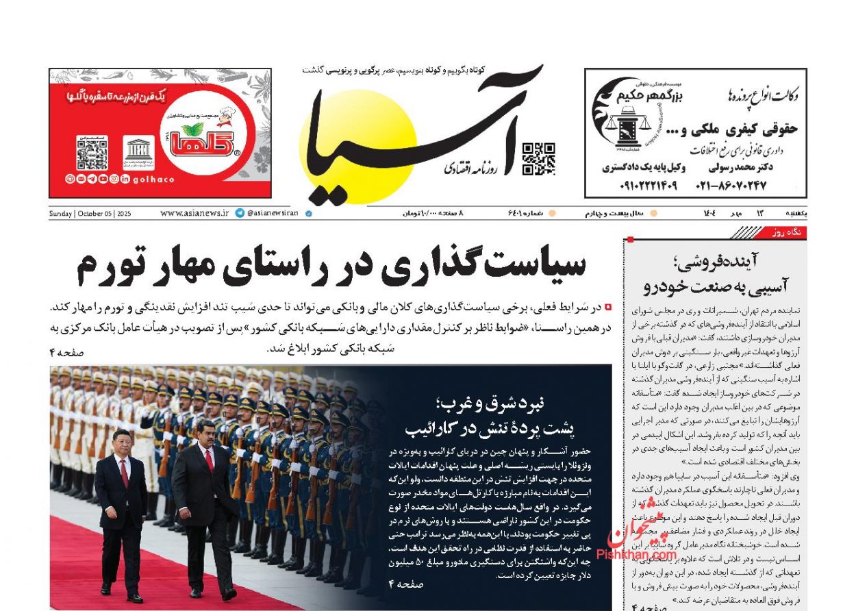 بازتاب_ پاتک دیپلماتیک حماس، سفره کوچک مستأجران، خیز قمار باز علیه کاراکاس، تحسین جهانی رسانه ملی و چهار وزیر در صف استیضاح بخشی از تیتر امروز روزنامههای کشورمان است.
