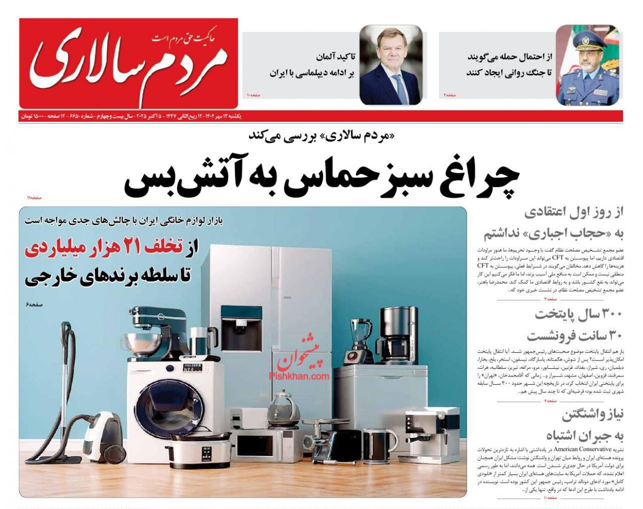 صفحه اول روزنامه ها 13 مهر 1404