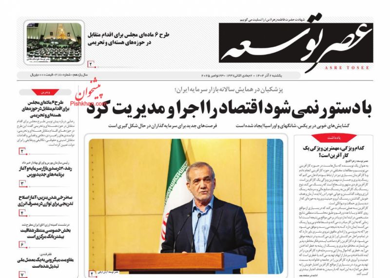 بازتاب_ گشایش در تجارت خارجی، قولهای پزشکیان به بورسیها، رژیم صهیونیستی درگیر نفوذ اطلاعاتی ایران و ضربالاجل ترامپ به زلنسکی برای تسلیم بخشی از تیترهای روزنامههای امروز کشورمان است.